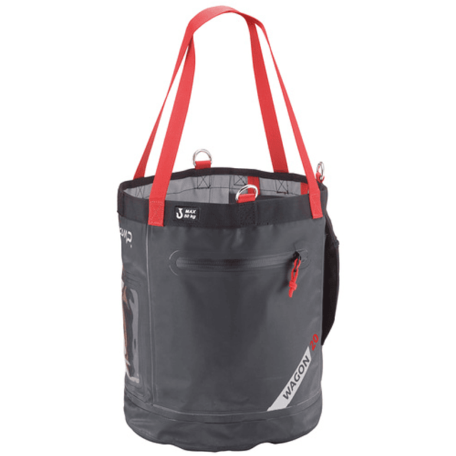Diseñado para fijar al arnés o para colgar, gracias a sus tres anillos metálicos. Carga máxima: 50 kg. Estructura semirrígida para garantizar que el cubo permanezca abierto mientas se usa. Capucha de cierre que se puede alojar en el bolsillo específico. Bolsillos interiores amplios. Bucles portamaterial, a los que también se puede fijar una o más Spacecraft Bag (se suministran por separado). Bolsillo transparente para colocar una etiqueta de identificación.